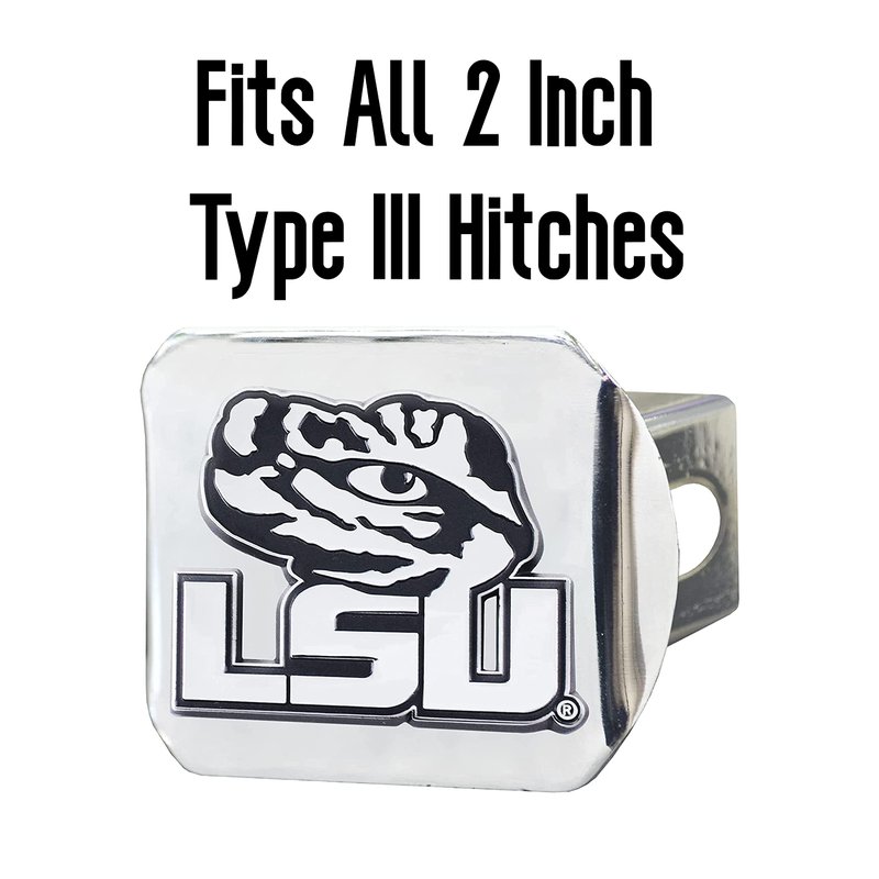 FANMATS 14972 LSU Tigers Chrome Metal Hitch Cover with Chrome Metal 3D Emblem