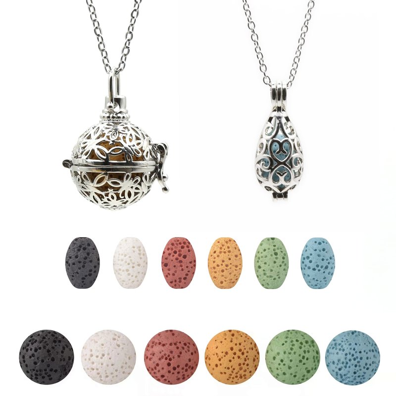 - [Product composition and material] 1 Hollow ball diffuser pendant locket and 1 teardrop diffuser pendant locket material:Alloy; 2 Adjustable chains material: 304 stainless steel ; 6 0.63 inches(16mm)volcanic lava stone ball, 6 teardrop shape volcanic stones; 1 nice gift box.