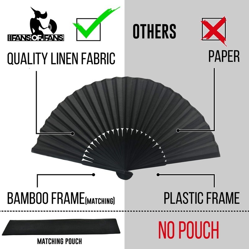 - ‹♥› A QUALITY PRODUCT OF FANSOF.FANS ► These handheld foldable hand fans are made of the finest quality linen fabric and bamboo to make them feel like feathers, lightweight but also durable while being affordable. Every single bamboo fan consists of 25 strong bamboo ribs with unbelievable attention to detail.