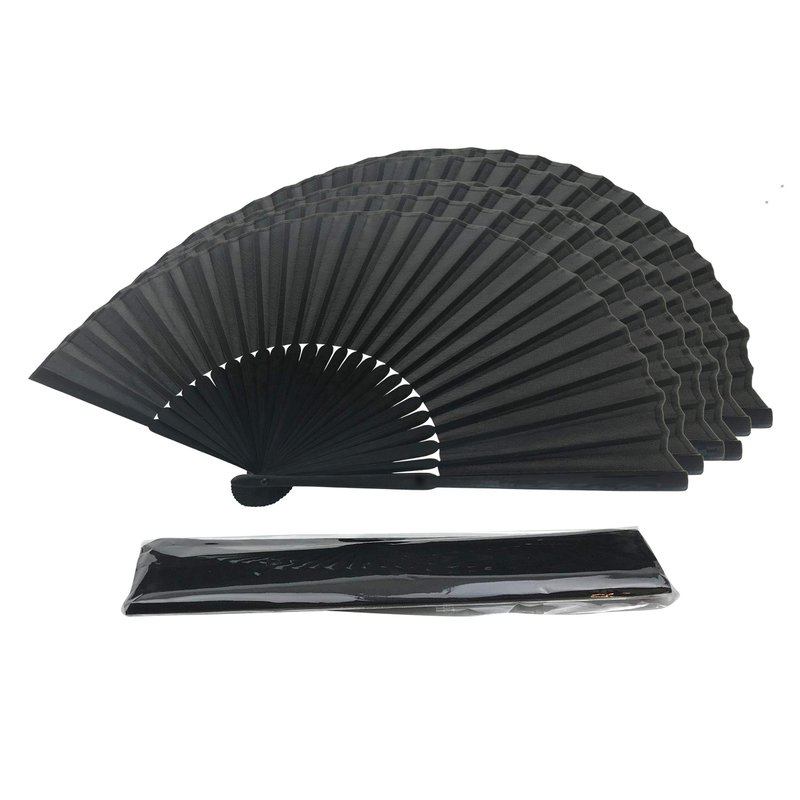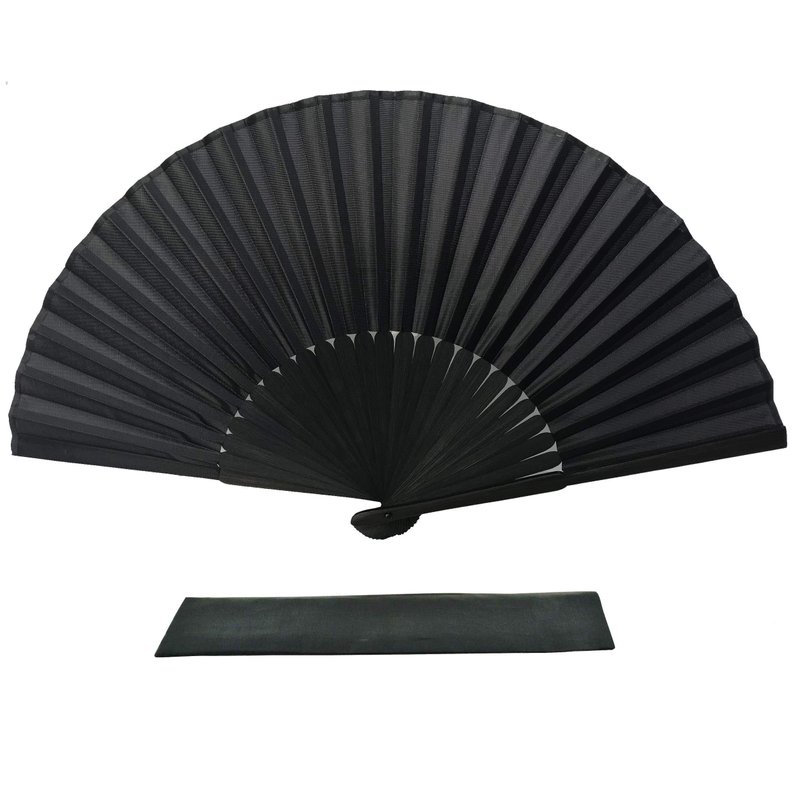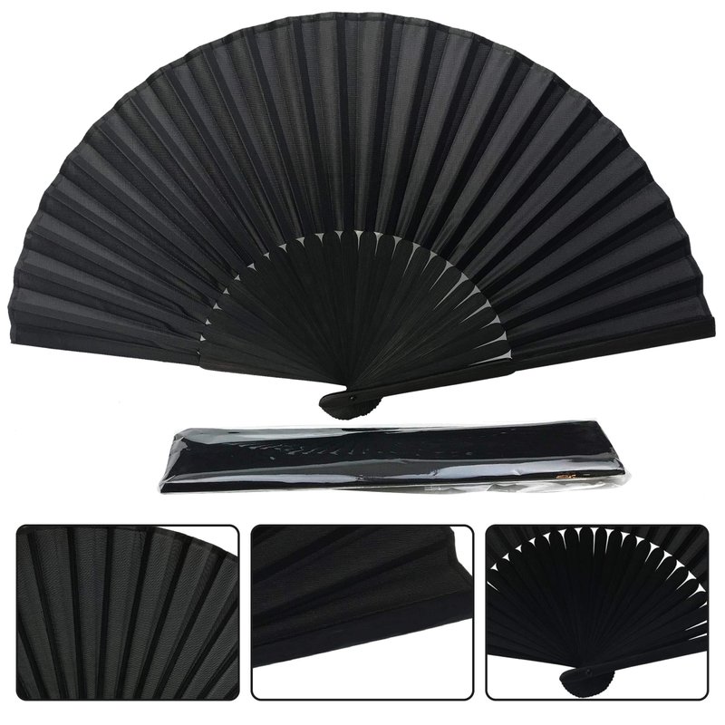 FANSOF.FANS Black Silk Fabric Folding Hand Held Fan with a Pouch Bamboo Ribs Chinese Vintage Handheld Girls Women Wedding Party Favour Gift (Simple Black)