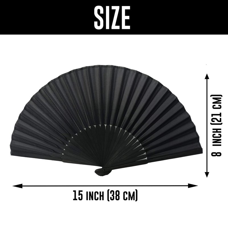 - ‹♥› MADE WITH CONVENIENCE IN MIND ► These Folding fans are big enough to bring a good breeze in hot times, they just fit perfectly even into a handbag when folded, you won't even know that it's there and they will not make any noise when applying, which provides you a comfortable and private experience. Because of their compact size it's convenient to carry when working or traveling in hot summer days. The fans are 38cm /15 inch in width and 21cm/ 8 inches in height when unfolded.