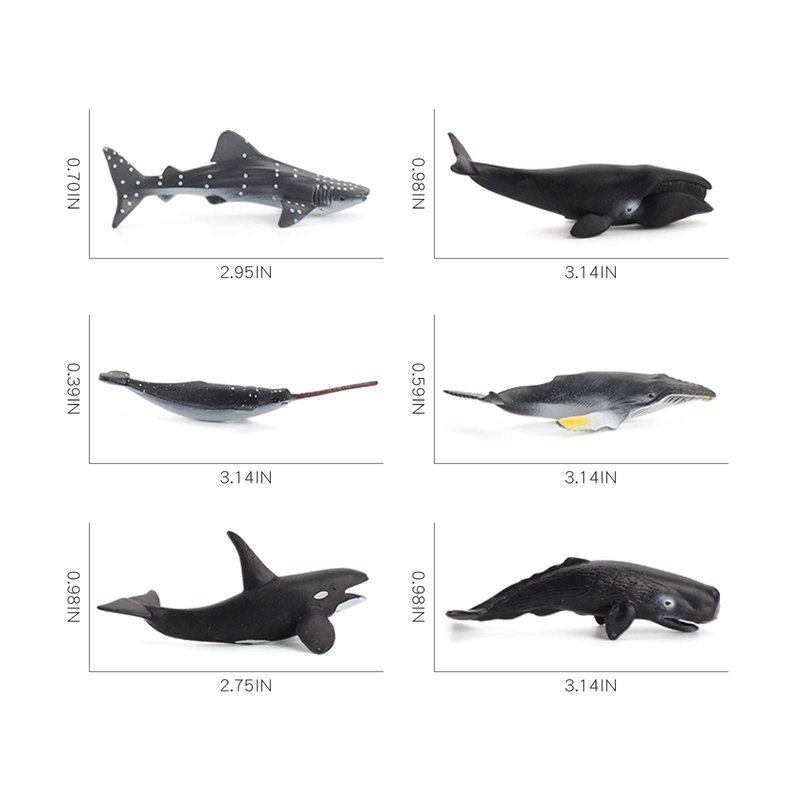 Fantarea 6 PCS Realistic Mini Sea Marine Animal Figures Ocean Creatures Action Models Figurine Whale Ornament Education Cognitive Toy for Boys Girls Kid