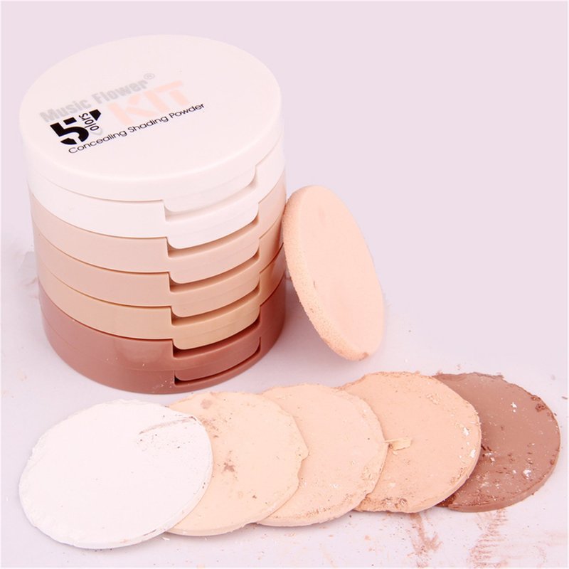 FantasyDay 5 Colors Long-Lasting Lightweight Multi-layer Matte Loose Setting Powder Pressed Face Makeup Concealing Shading Powder Foundation for All Skin Tones, Minimizes Fine Lines & Imperfections