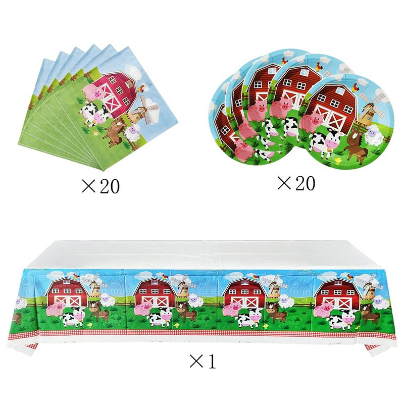 Farm Animal Party Tableware Set, Farmhouse 20 Plates and 20 Napkins and Tablecloth 71 '' x 42 '', Farm Animal Themed Party Decoration Supplies