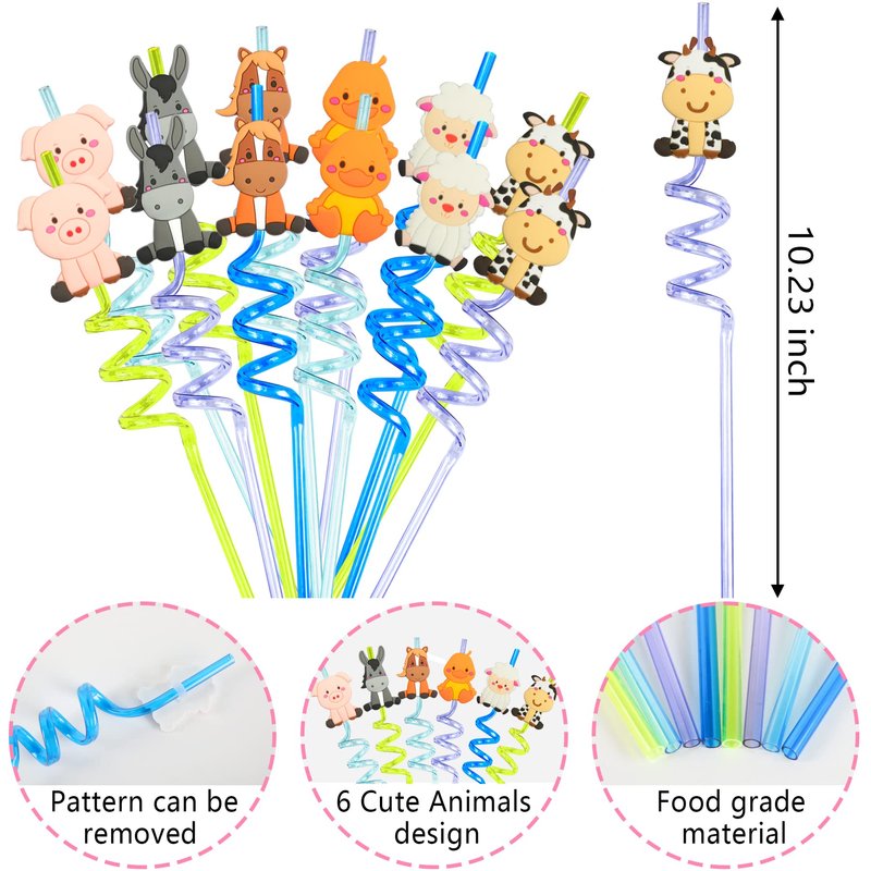 - PACKAGE INCLUDE - Farm animals party favors set includes 12 PCS Farm Animal Masks, 12 PCS Keychains, 12 PCS Stickers, 12 PCS Straw, 12 PCS Slap Bracelets, 12 PCS Pink Rubber Pigs, 12 PCS Paper Gift Bags.
