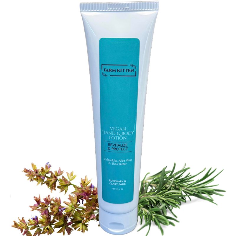 From the moment you pop the cap, the fresh scent of Rosemary and Clary Sage brings balance to your day. Massage this rich, revitalizing lotion into your skin. Concentrate on dry areas. You'll love the enriched blend of organic oils and botanticals. Vegan. Free from chemicals like parabens, sulfates, phthalates, synthetic dyes, formaldehyde, mineral oil, cruelty and bad decisions.