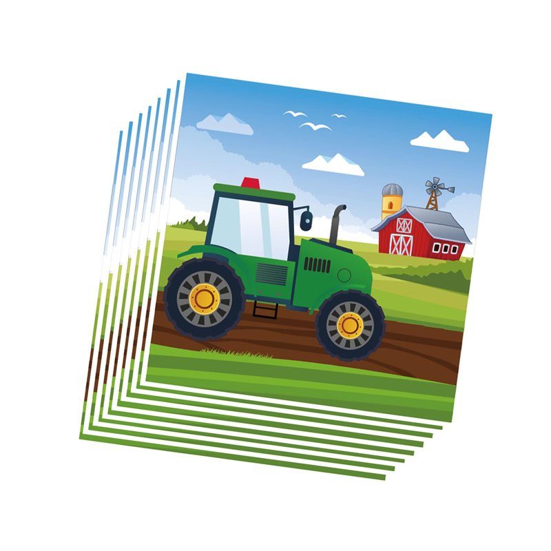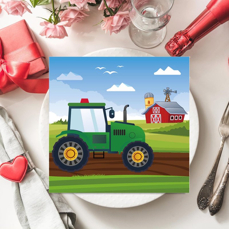 - Tractor Party Napkins: Designed with a Tractor themed pattern, fresh and vibrant colours to bring your table to life, perfect for decorating with Farm Tractor Birthday party supplies.