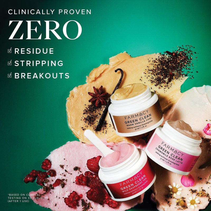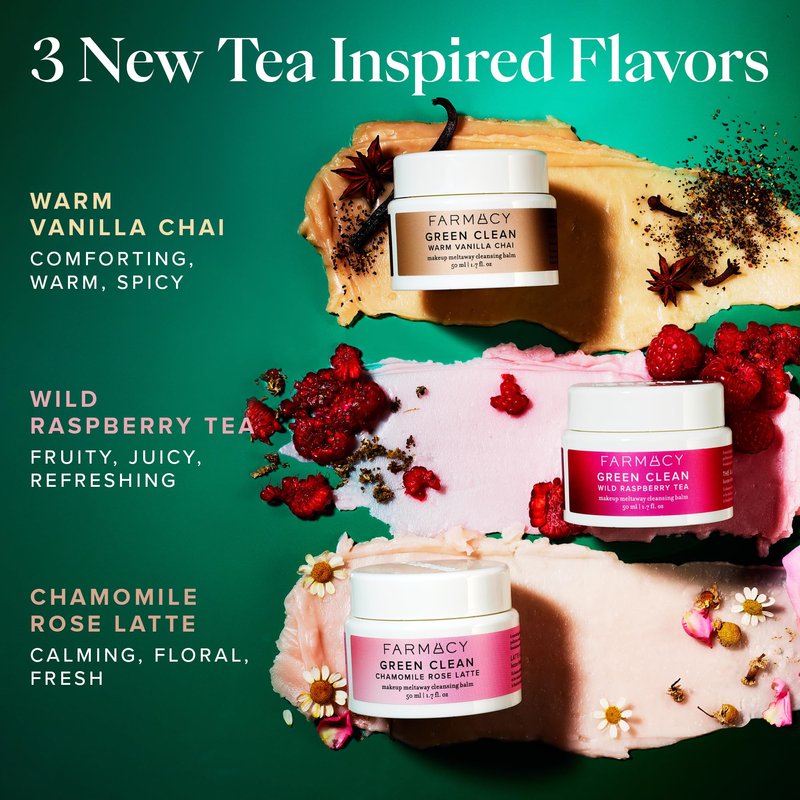 Farmacy Cleansing Balm Skin Care Set - Tea Harvest Travel Size Makeup Remover - Limited Edition Skincare Set Includes Warm Vanilla Chai, Wild Raspberry Tea + Chamomile Rose Latte (3 Count)
