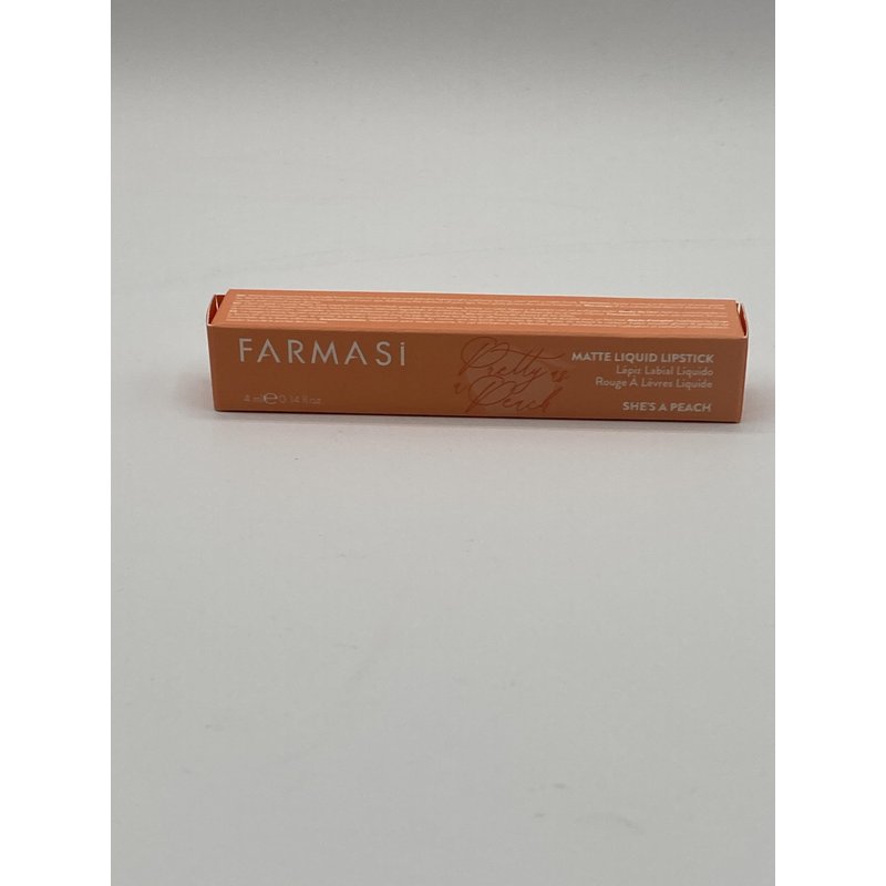 Farmasi Liquid Matte Lipstick in the shade She's a Peach is a must-have for a vibrant, long-lasting lip look. This 4ml/0.14flOz liquid lipstick delivers intense pigmentation and a velvety matte finish that stays put for hours. The lightweight formula glides on smoothly and evenly, providing full coverage with a single swipe. Enriched with moisturizing ingredients, it ensures comfortable wear without drying out your lips. Perfect for any occasion, She's a Peach adds a touch of elegance and color to your makeup routine. Usage Recommendation: Apply directly to clean, dry lips starting from the center and moving outwards. Allow a few seconds to dry. For external use only.