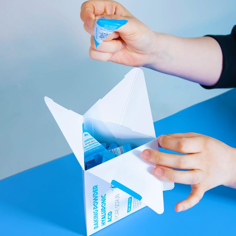 - AN EXFOLIATING FACE SCRUB WITH HYALURONIC ACID. This facial scrub, formulated with baking powder, AHA, BHA, and PHA ingredients, is effectively designed to deeply cleanse and refresh pores, leaving skin regenerated and refreshed after every use.