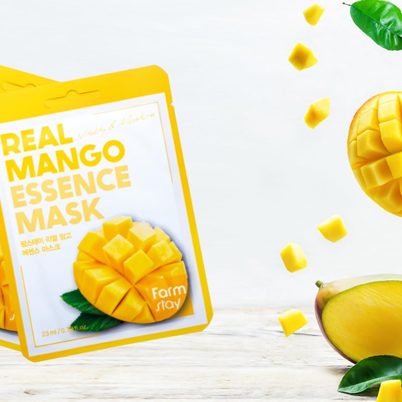 FARMSTAY Real Mango Essence Mask - Mango Extract Face Mask - With Plumping Hyaluronic Acid - Nourishes Skin, Stimulates Cell Regeneration - 0.78 oz