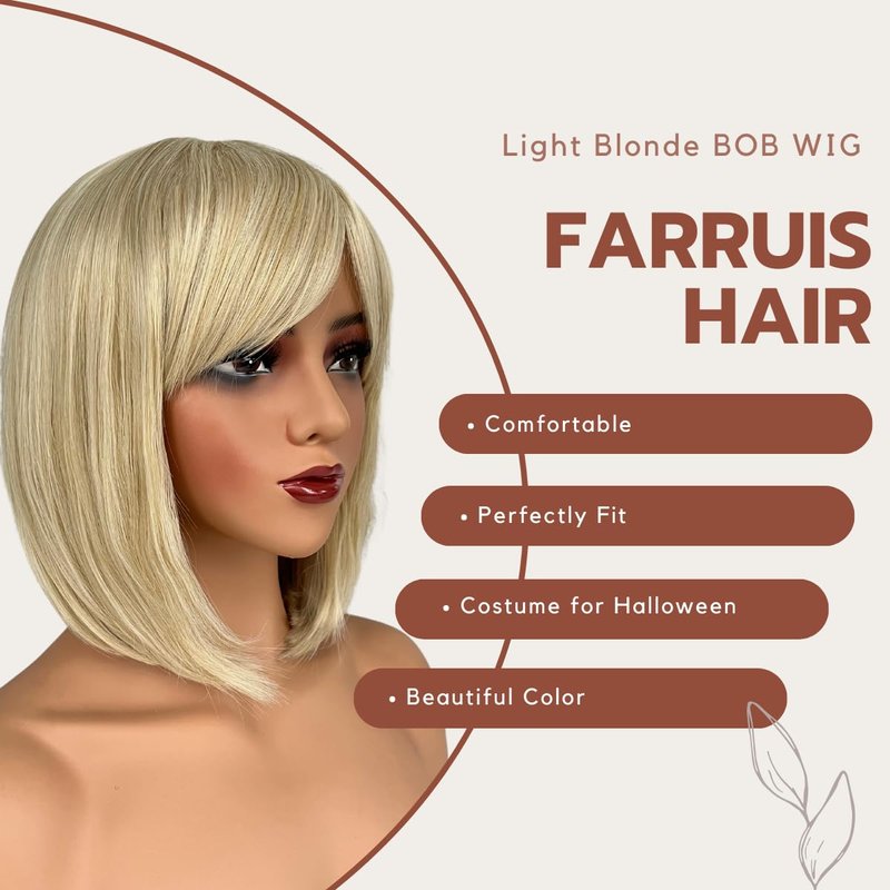 FARRUIS Light Blonde Bob Wig for Women 12 Inch Short Light Blonde Straight Bob Wigs with Bangs for Women Short Hair Wig Synthetic Wig for Cosplay, Daily, Halloween