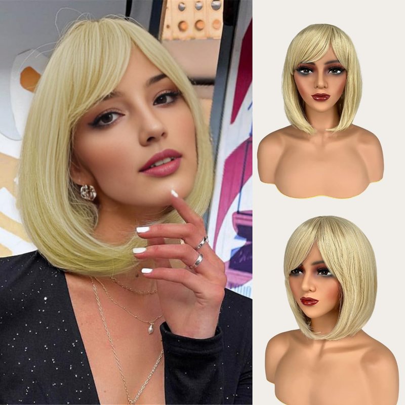- Premium Synthetic Hair: Our fashionable short blonde bob wigs are made of top-notch heat-resistant fiber. They look natural, with a real and pretty appearance, and have a soft touch. It's a high-quality product offering good texture, shine, and a natural color. Super soft and skin-friendly, ideal for long-term use.