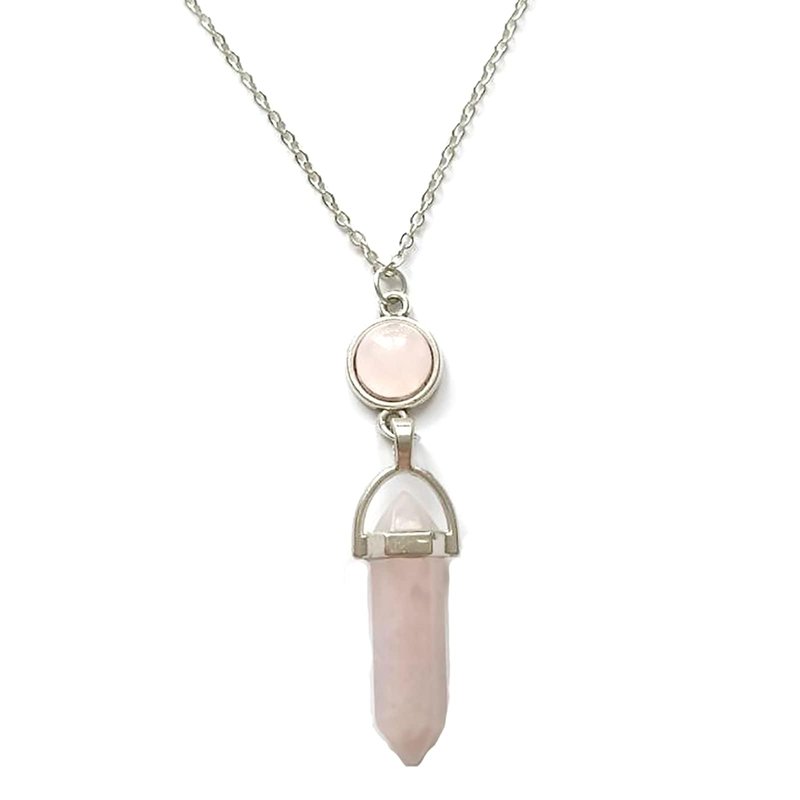 Faruodis Turquoise Crystal Necklace for Women Hexagonal Healing Gemstone Spiritual Energy Pendant Necklace Jewelry for Women(Pink)