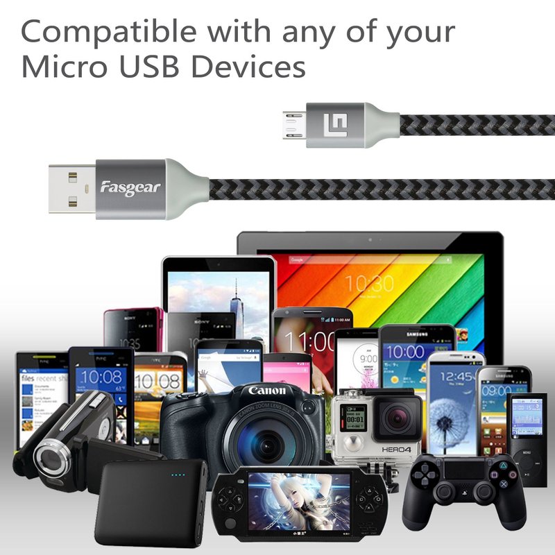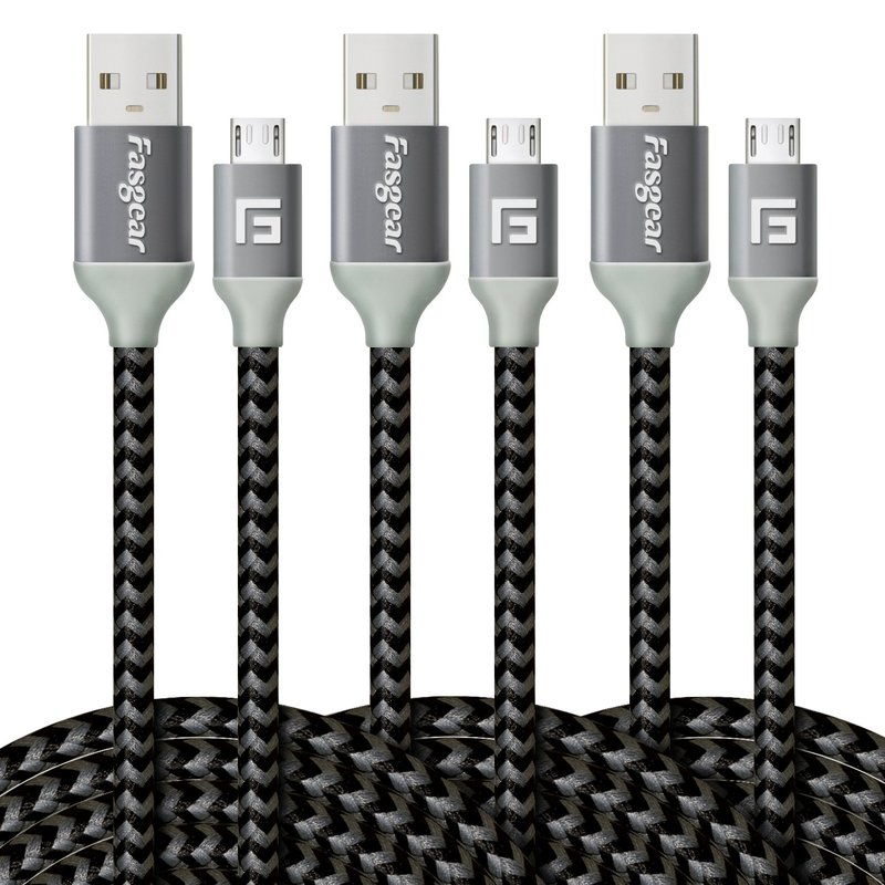 Fasgear Micro USB Cable 10 ft, 3 Pack Fast Charging Micro USB 2.0 High Speed Data Sync Nylon Braided Android Smartphone Charger Compatible for S7 Edge/Note 5,MP3,PS4, Kindle(Black)