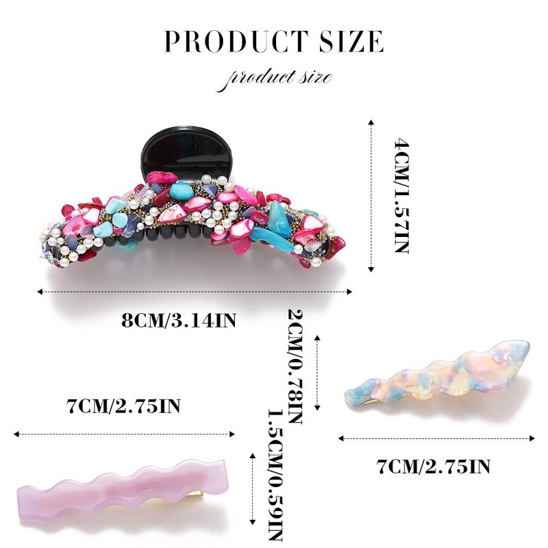 - French design claw clips size:7.6cm/2.99 inches,easy to use and hard to fade or break.