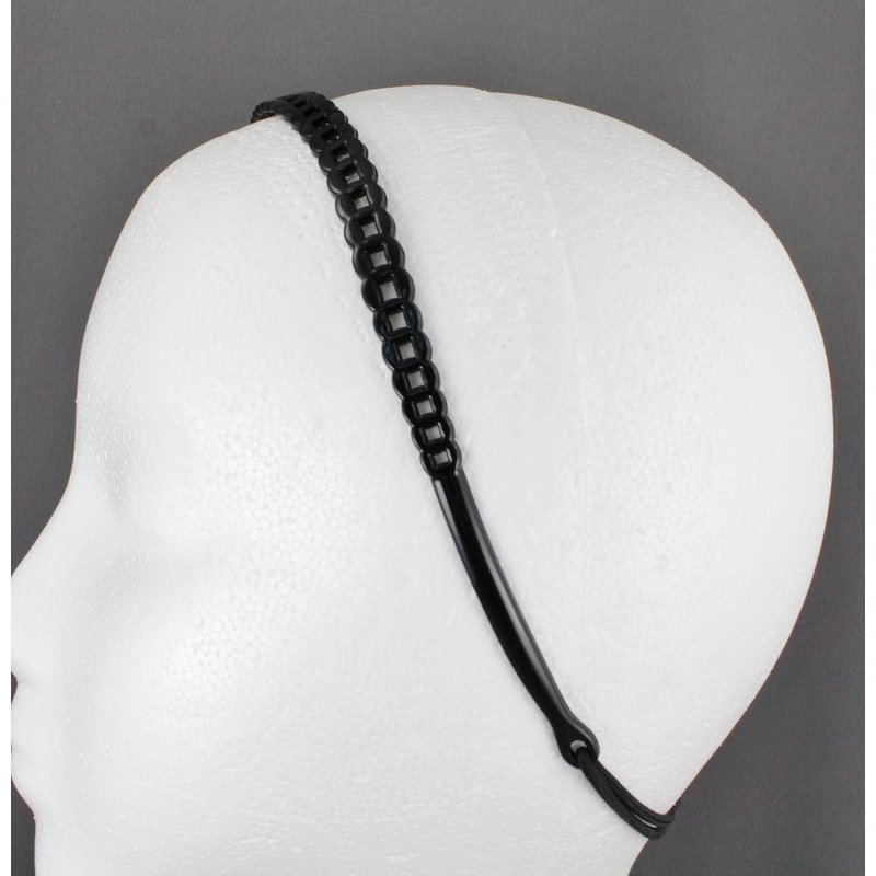 Fashion Accessories Now Black chain link pattern jelly skinny narrow headband soft stretch hair grip teeth 3/8 inch wide circle link