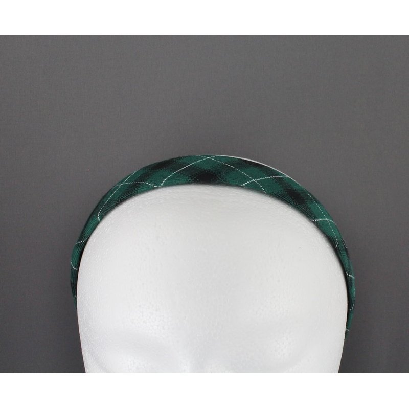 Fashion Accessories Now green black white plaid headband 1 1/8 inches wide tartan fabric covered hair band plaid headband