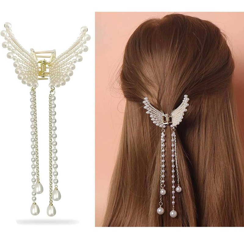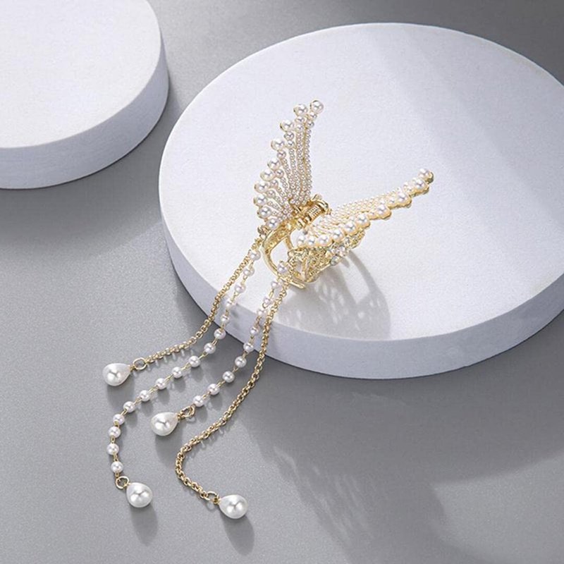 Fashion FitoorHair Accessories 1 Pc Hair Clips For Women Stone Accessories For Girls Hair Accessories For Women Wedding Claw Clip Butterfly Hair Clip Hair Clutcher Metal Hair Clips Pearl Hair Clip