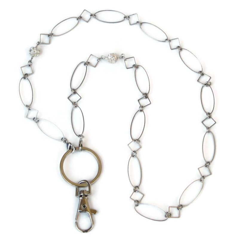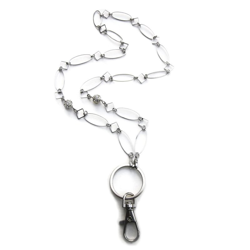 Fashion Lanyard for Women by Silk Rose, Silver ID Badge Holder Necklace