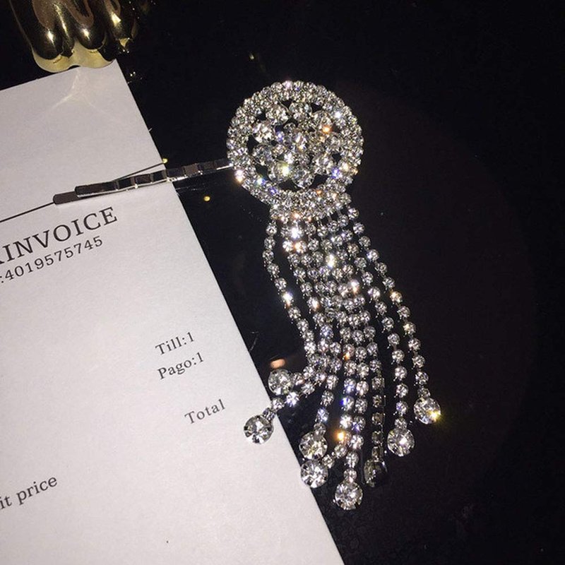 Package:1PC;Size:About 3.35''X2.2'';Color : Silver Tone, Rhinestone Bobby Pins