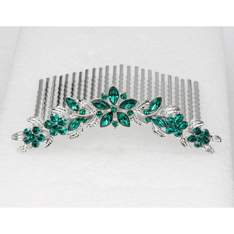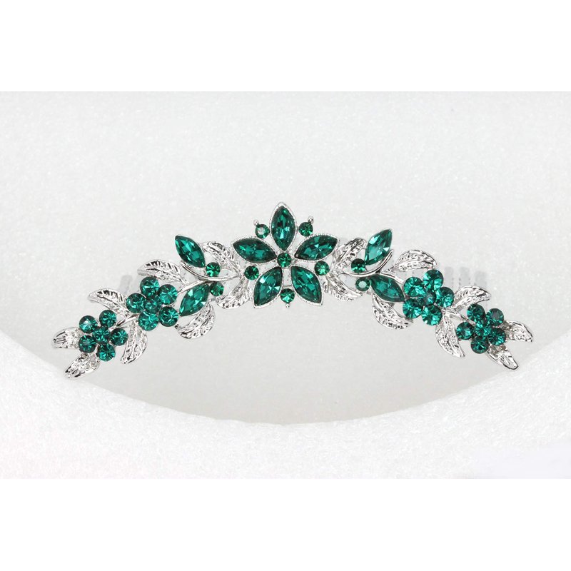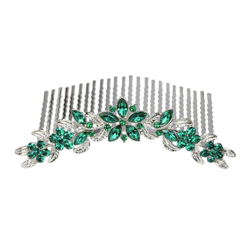 Faship Emerald Green Rhinestone Crystal Floral Hair Comb