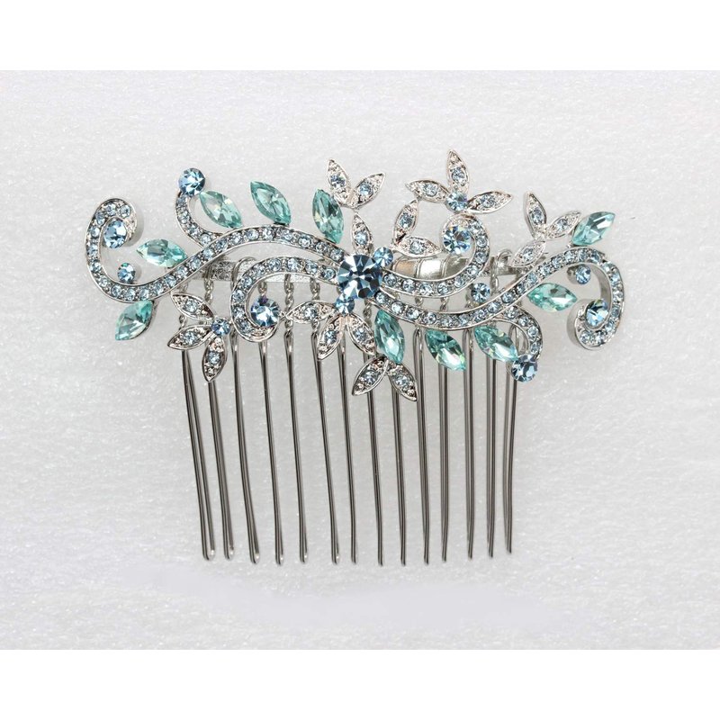 Faship Gorgeous Aqua Rhinestone Crystal Floral Hair Comb