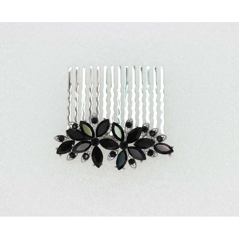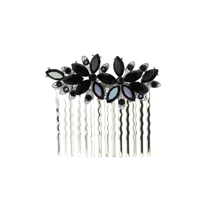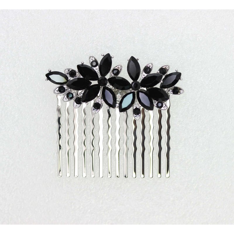 Faship Gorgeous Black Rhinestone Crystal Floral Hair Comb