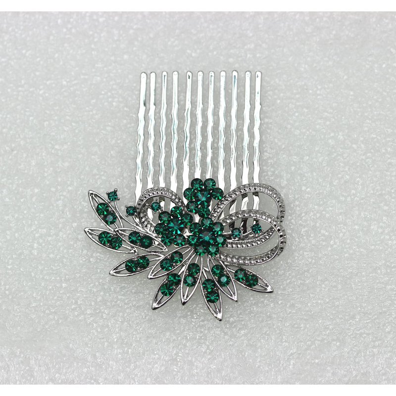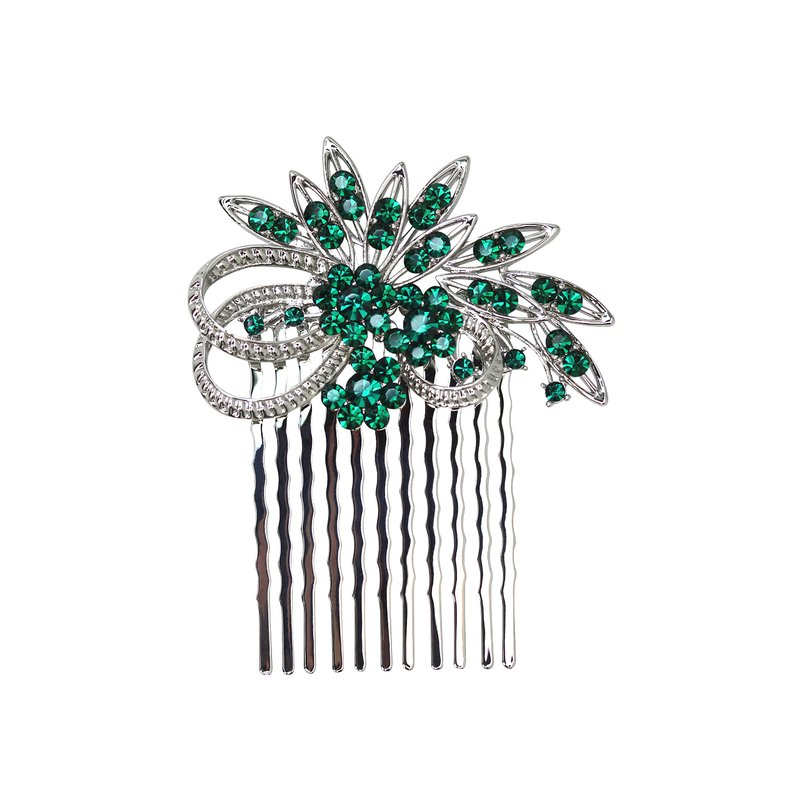 Faship Gorgeous Green Rhinestone Crystal Floral Hair Comb