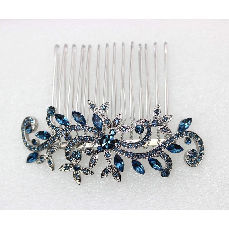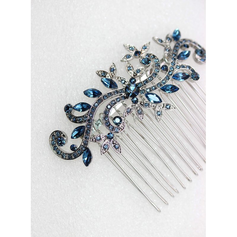 Faship Gorgeous Navy Blue Crystal Floral Hair Comb