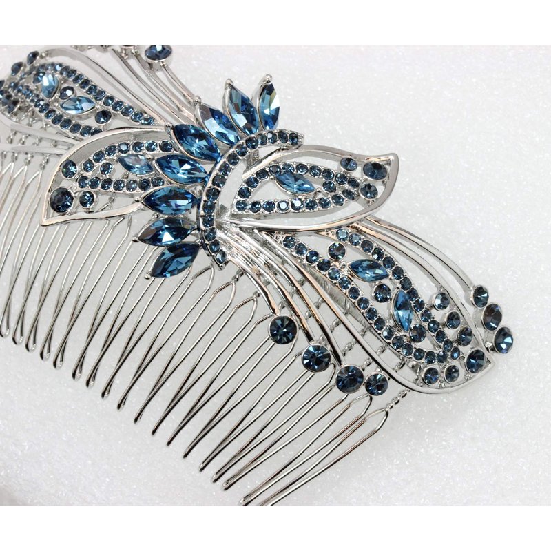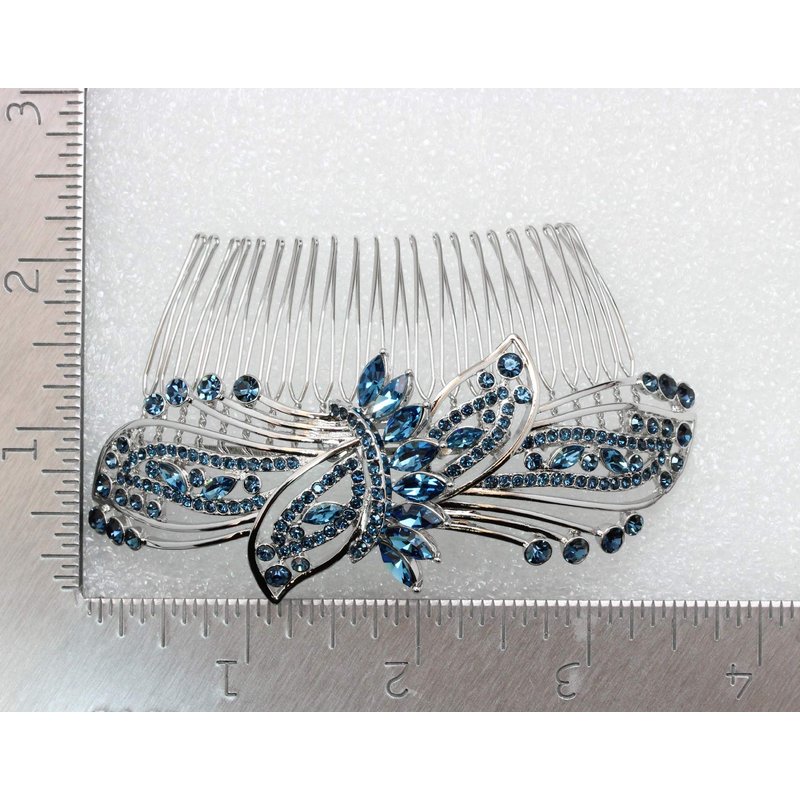 Faship Gorgeous Navy Blue Rhinestone Crystal Huge Floral Hair Comb