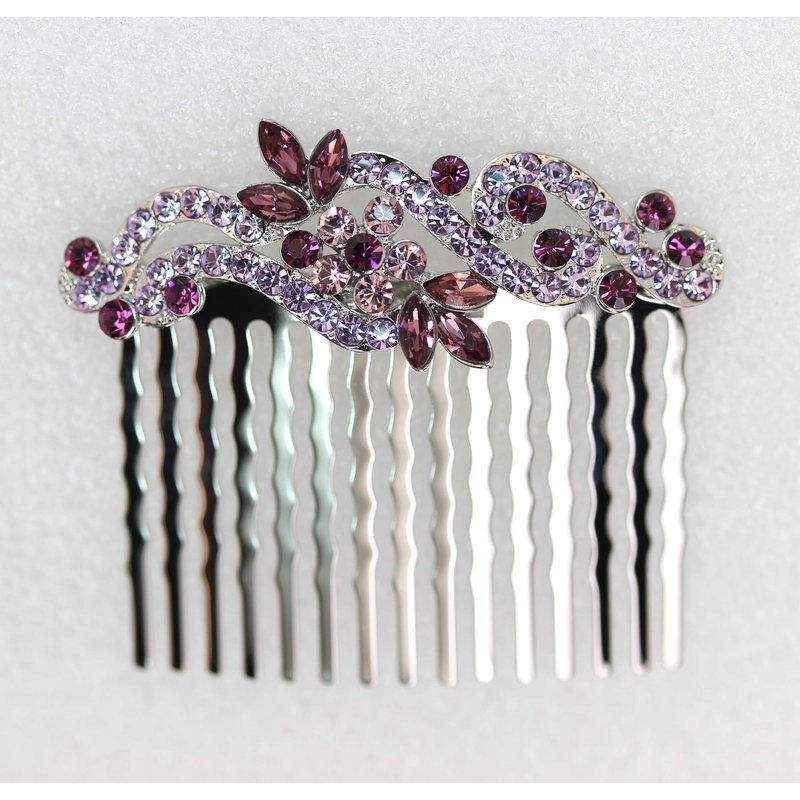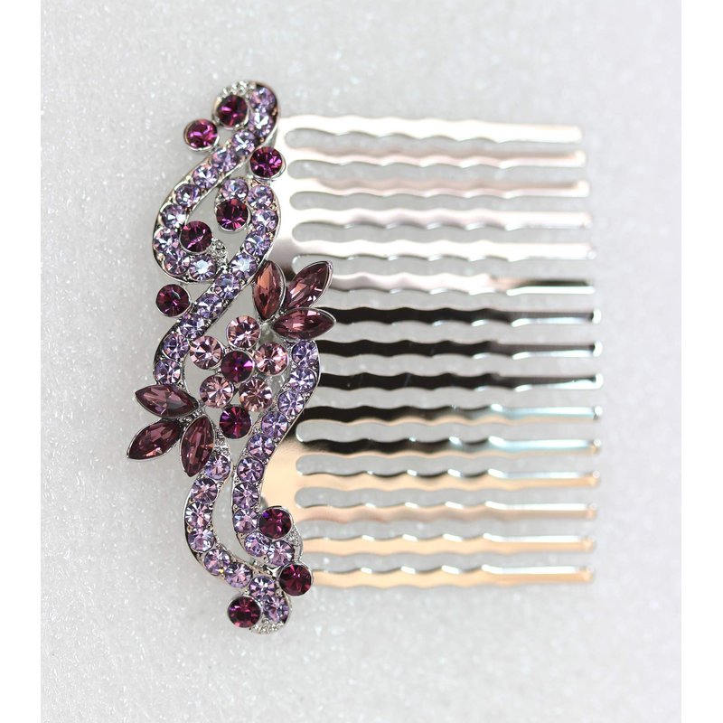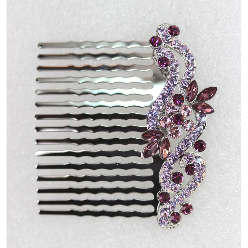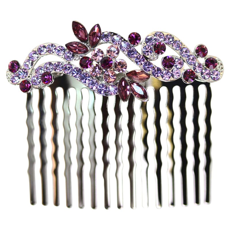Faship Gorgeous Purple Rhinestone Crystal Floral Hair Comb