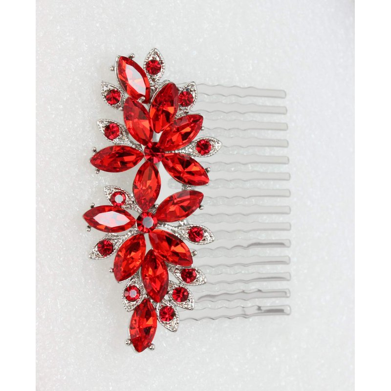 Faship Gorgeous Red Rhinestone Crystal Floral Hair Comb