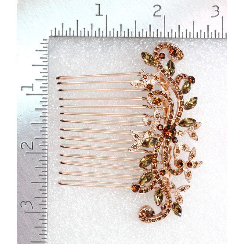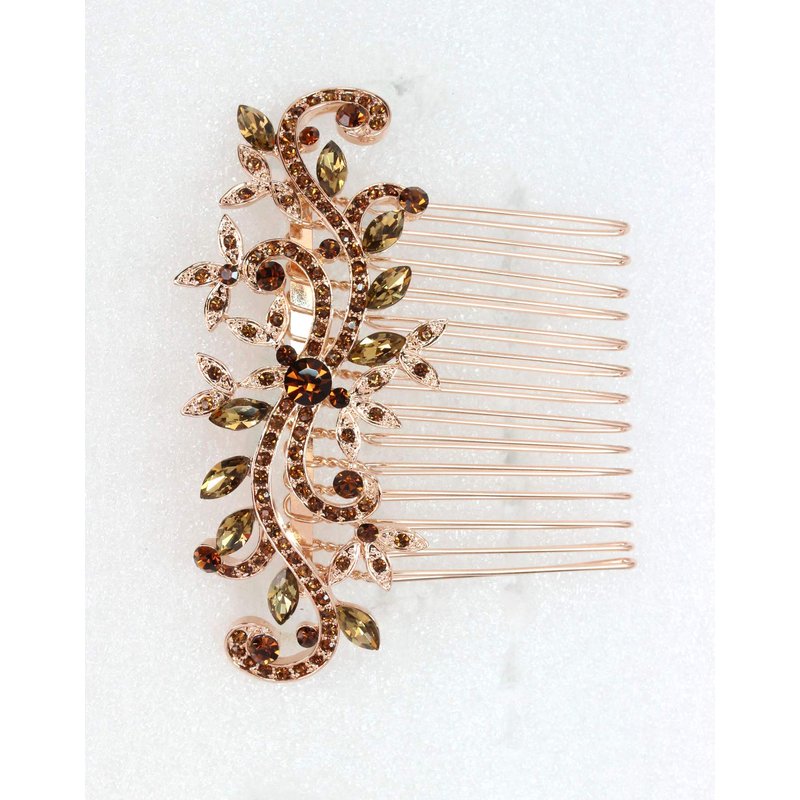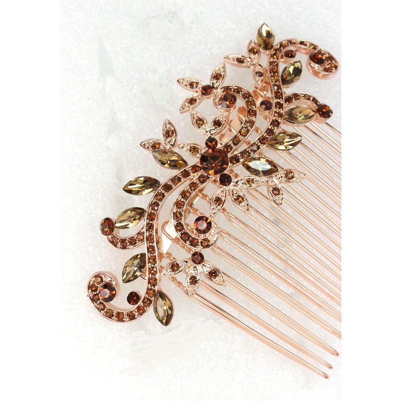 Faship Gorgeous Smoked Topaz Rhinestone Crystal Floral Hair Comb