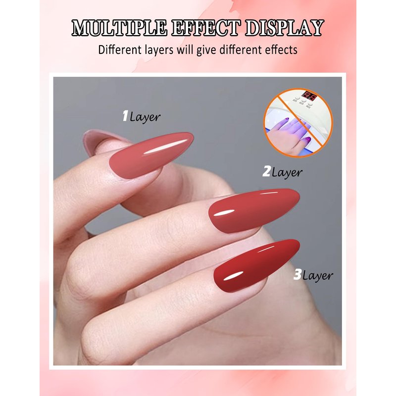 - Long-Lasting & Full Coverage Gel Polish - This collection are made with rich premium pigments, high durability and intense pigmentation makes it stay last longer and brings you brilliant shine finish. With proper application, 3 weeks+ wearing is attainable. Easy Application and Good Tenacity. If you want a sheer nude shade effect we recommend apply 1-2layers. If you like a nude opaque effect you can apply 3-4 layers.