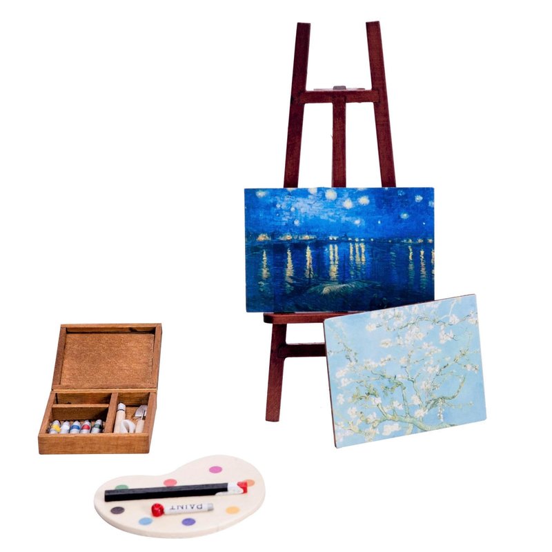 Fateanuki Doll House Accessory Almond Blossoms&Night Sky Easel Miniature Dollhouse Toy Balcony Patio Furnitures Decoration Accessories 1 12 Scale