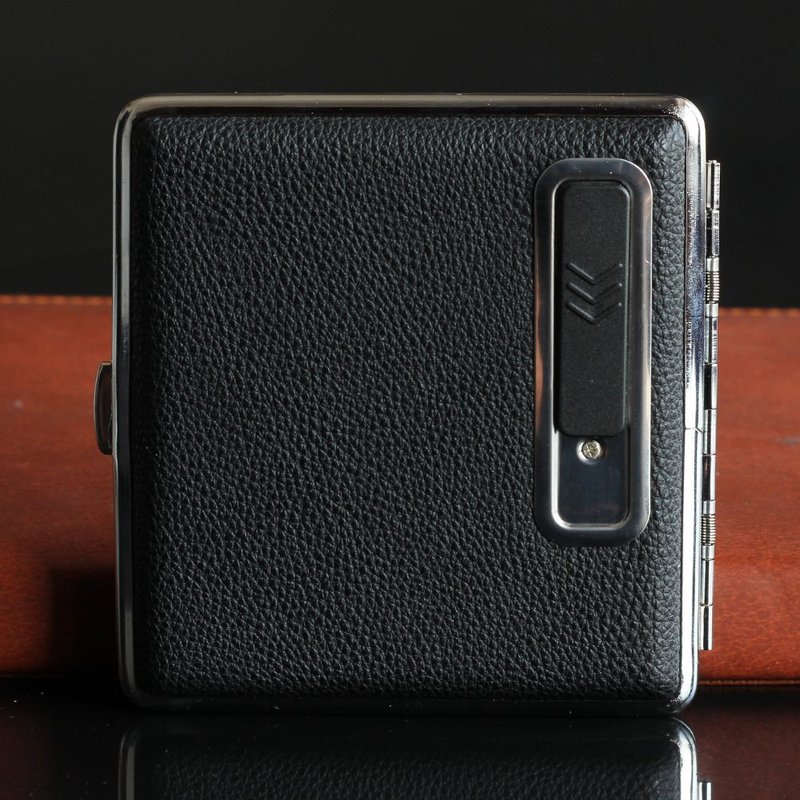 Leather Black Cigarette Box Case Holder with USB Electronic Charging