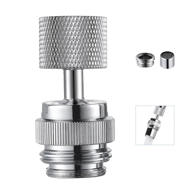 - 1.【Swivel Faucet Adapter Kit】: faucet to garden hose adapter with aerator M22 (55/64"-27) female to 3/4” male hose thread; Another adapter with (M24) 15/16” -27 Male to M22 (55/64"-27) Male, Adapter for round faucet with (M24) 15/16” -27 female thread.