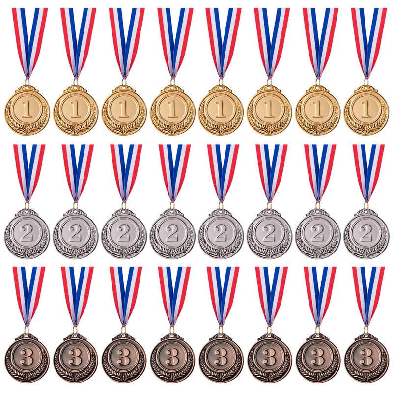 - 【WHAT YOU GET】: includes 3 kinds of medals, gold medal, silver medal, bronze medal, each styles has 8 pieces, total 24 pieces; Each pieces is equipped with a ribbon