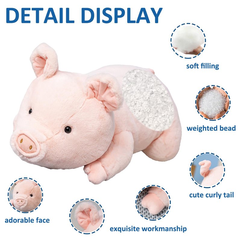 - Fine Craftsmanship - The weighted pig stuffed animal plush pillow is designed cute, exquisitely crafted, and pays special attention to details. It is a beautifully crafted cute plush toy that is loved by people of all ages.