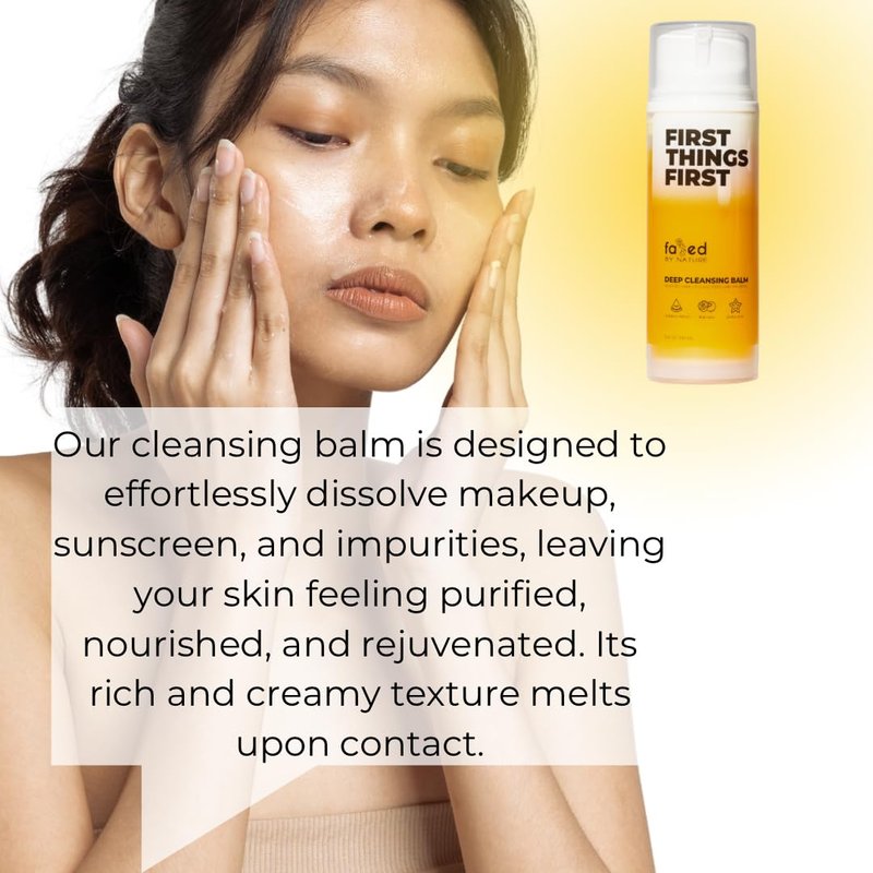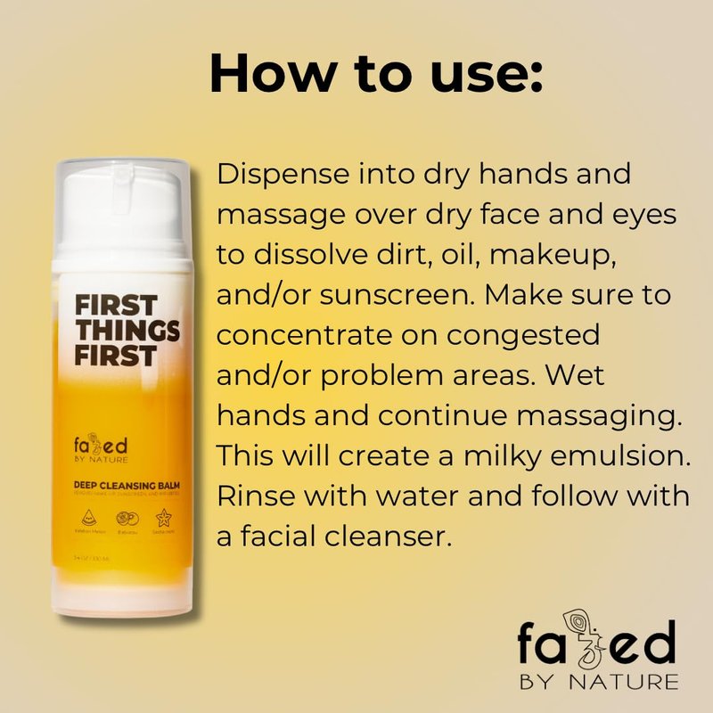 Fazed by Nature First Things First Deep Cleansing Balm, Oil Cleanser for Face & Makeup Remover with Kalahari Melon, Sacha Inchi, & Sea Buckthorn Oil, Pump Dispenser, Clean Skincare, 3.4 oz