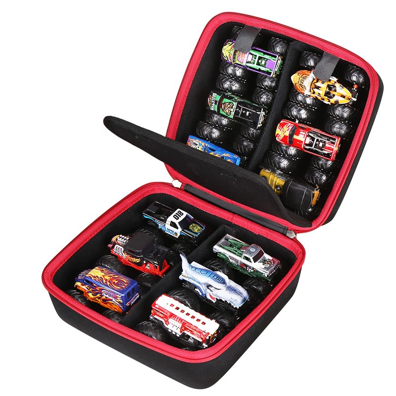 • This hard carrying traveling case is designed for Hot Wheels Monster Trucks Set of 12 1:64 Scale Die-Cast Toy Trucks