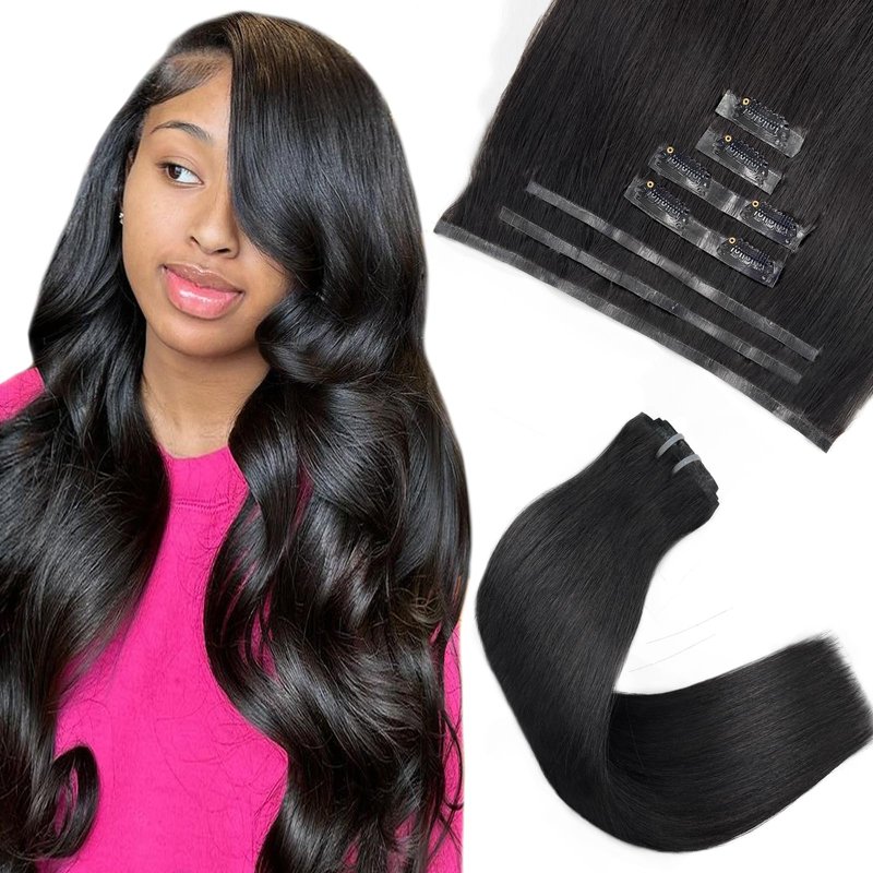 - 🌹100% Virgin Real Human Hair Clip ins ♥ Seamless clip ins real human hair black women, No chemical smell ,Safety and healthy remy human hair clip in extensions.