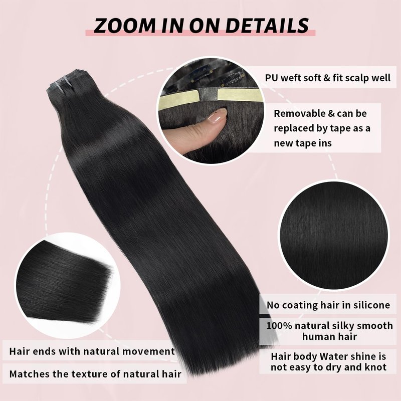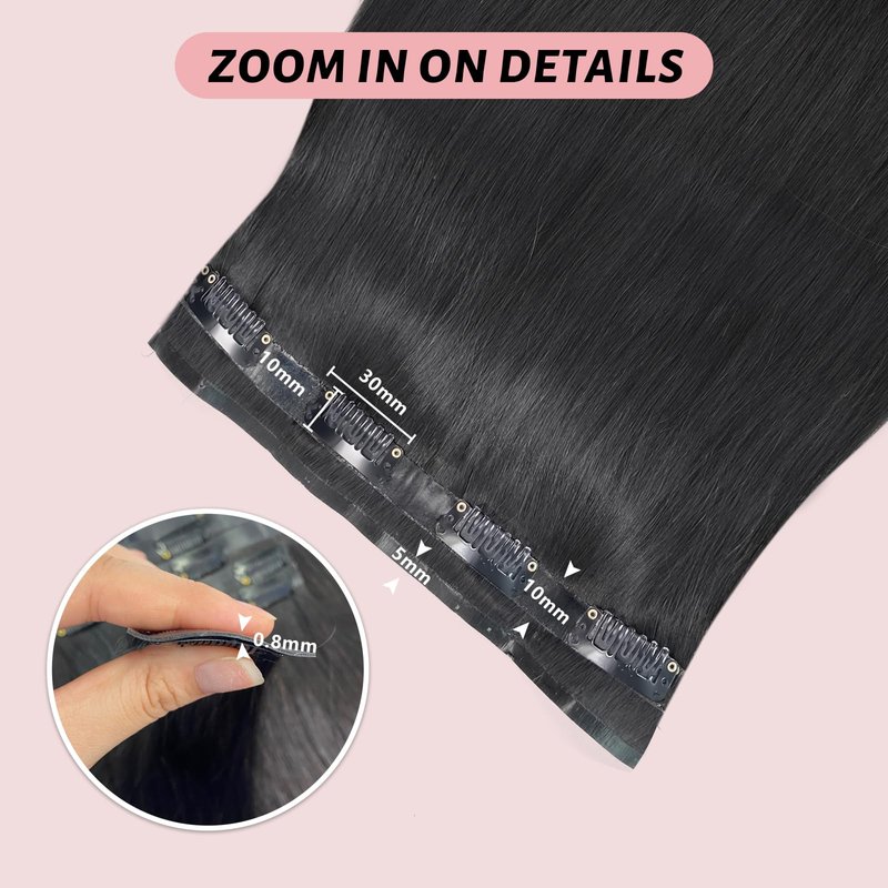- 💋FBLhair Human Hair Extensions Clip ins 💌Seamless clip ins human hair Ultra-thin 0.8mm invisible and soft PU black straight clip on hair extensions human hair, full and thick raw hair end.