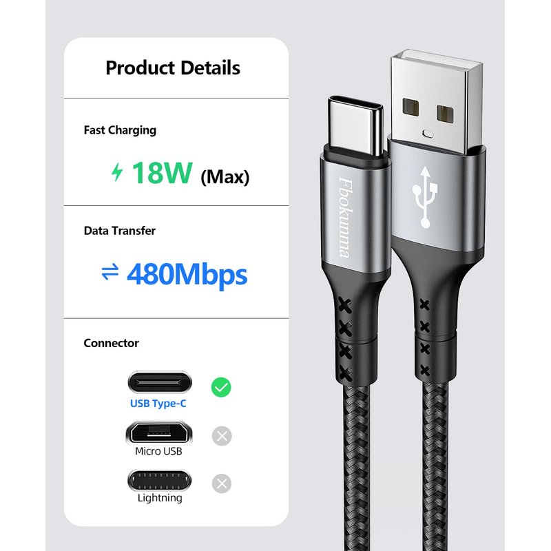 - 3A Fast Charging & Sync : USB A to USB C Cable with Premium 56 KΩ pull-up resistor and Aluminum foil anti-jamming layer, supports More Safe High-Speed Charging (QC 3.0/ QC 2.0) and Faster Data Transfer (480 Mbps Max)