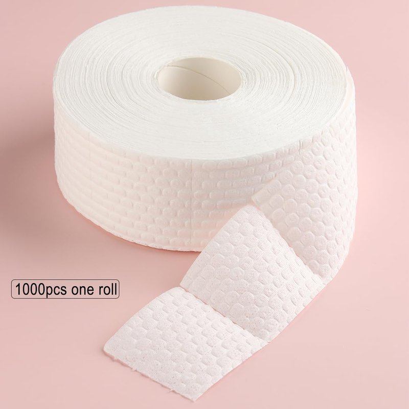 Fcozpjk 1000Pcs/1 Roll Lint Free Nail Wipes, Nail Polish Remover Pads, White Cotton Pads Wipes for Gel Nails, Dust Cleaning Degreasing Nail Napkins Cotton Swabs, Manicure Salon Supplies