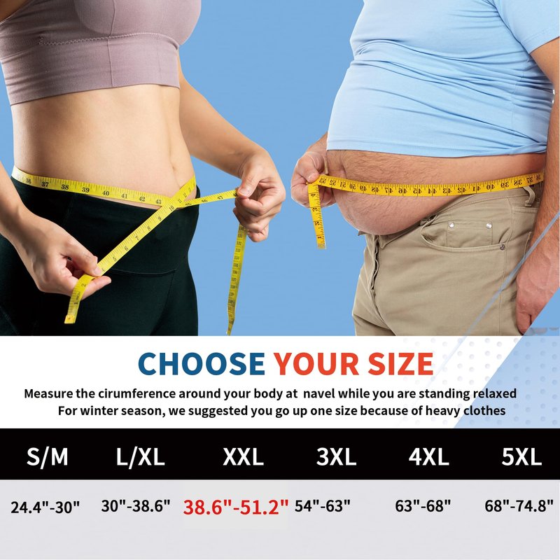 - ✅[CHOOSE YOUR SIZE] - Pay attention to measure your waist at the level of your navel, not your pants 'size. S/M: Fits circumference around navel 24.4-30 inch. L/XL: Fits 30-38.6 inch. XXL: Fits 38.6-51.2 inch. 3XL:Fit 54-63 inch. 4XL: Fits 63-68 inch. 5XL: Fits 68-74.8 inch.