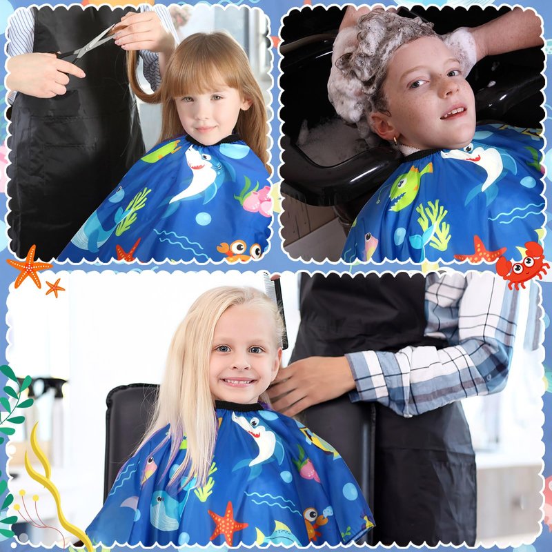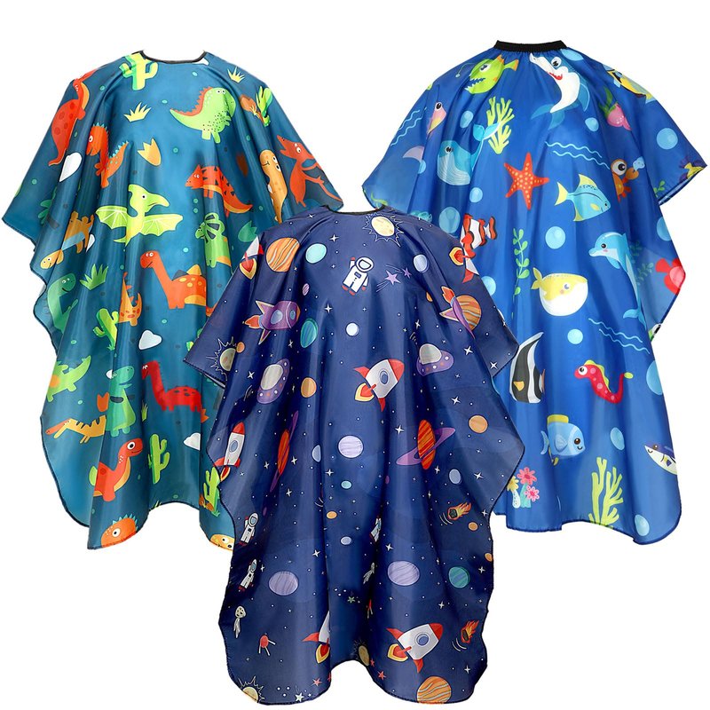- Cartoon Patterns: The haircut cape has cartoon universe pattern, cartoon dinosaur patterns and cartoon marine life patterns, each kids haircut cape is vivid and lovely, adding interest to children's haircut experience. These hair cut capes for kids can be used not only for haircuts, but also ideal for other manual or painting activities to protect children's clothes from stains
