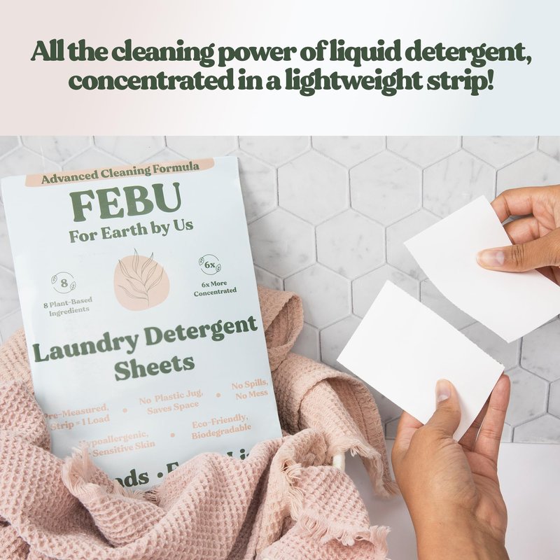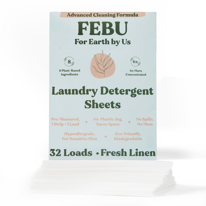 FEBU Eco Friendly Laundry Detergent Sheets | 32 Loads, Fresh Linen | 6x More Cleaning Power With Only 8 Plant-Based Ingredients | Hypoallergenic Laundry Sheets | Zero Waste Laundry Soap Sheets