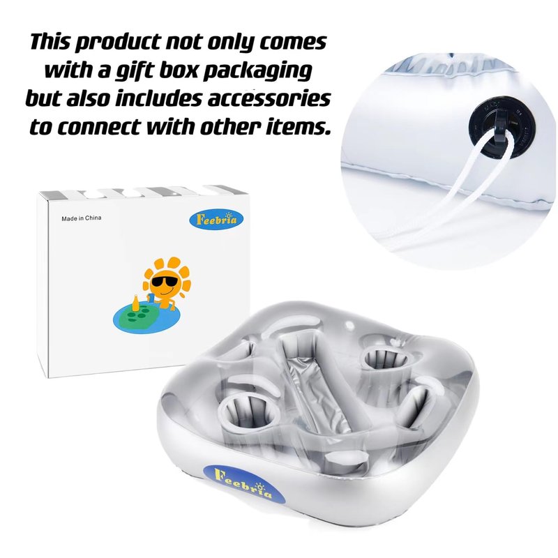 - EASY TO INFLATE: Get the party started right away without struggling to inflate your drink float holder! Feebria’s swimming pool floating bar can be easily inflated - even use a hair dryer for super fast party prep!